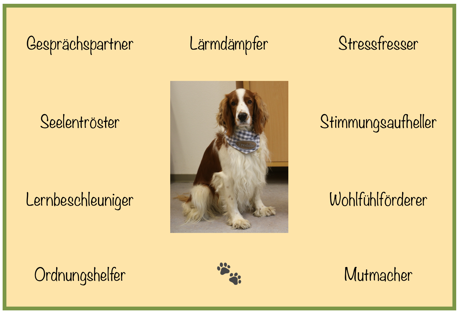 Ich bin immer gerne in der Schule und freue mich, das Team der Grundschule Osterstraße auf vier Pfoten zu unterstützen! High Pfote und bis bald!