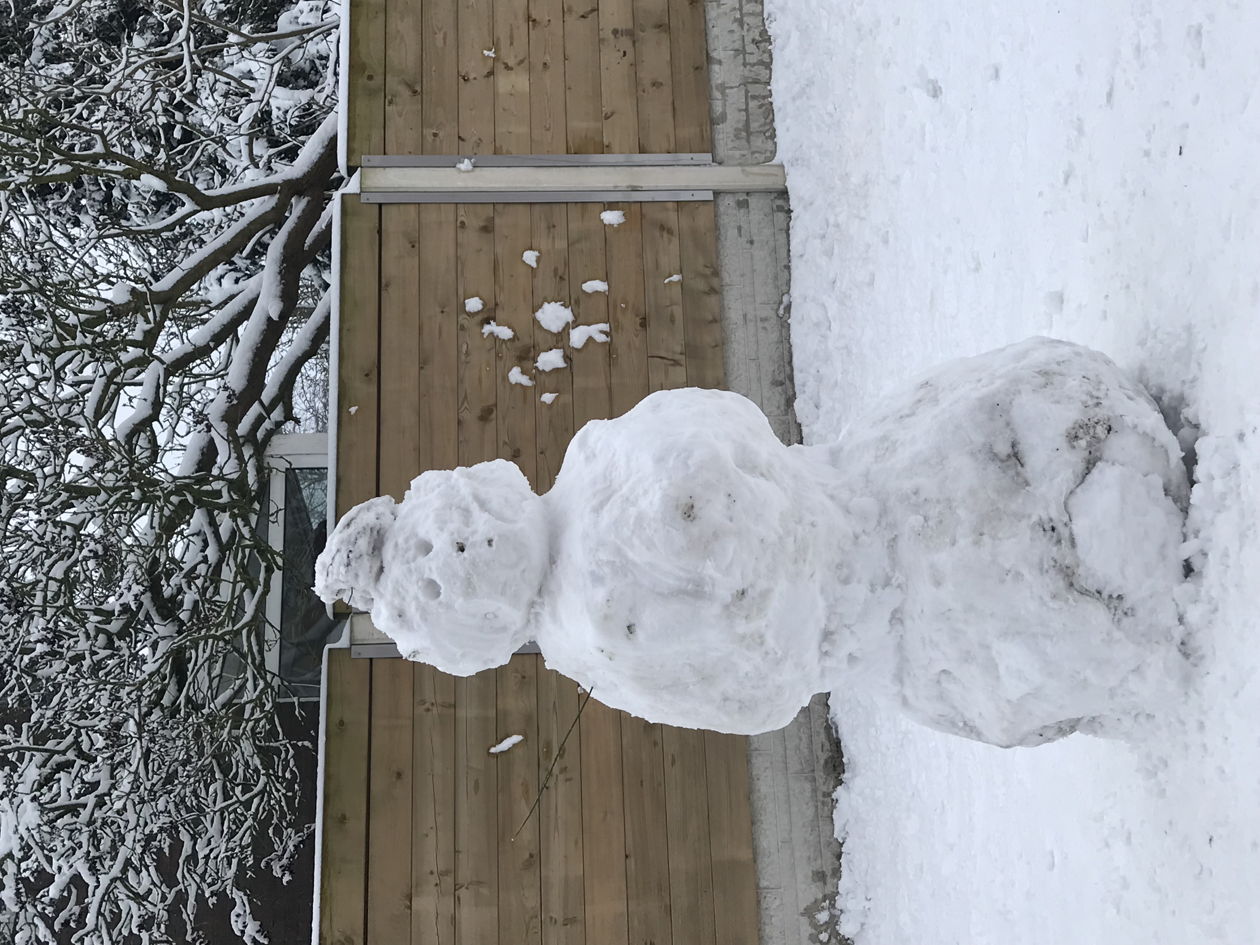 Ein schöner, riesiger Schneemann, von den Kindern erbaut.