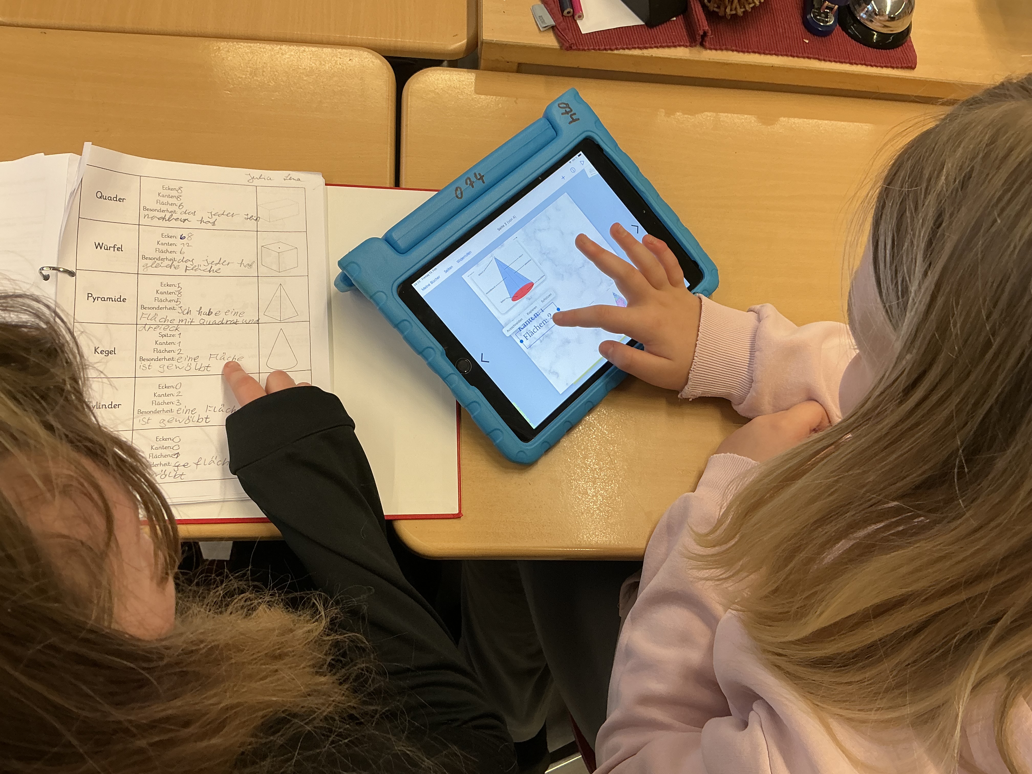 Die vierten Klassen arbeiten mit dem Tablet und vergleichen geometrische Körper.