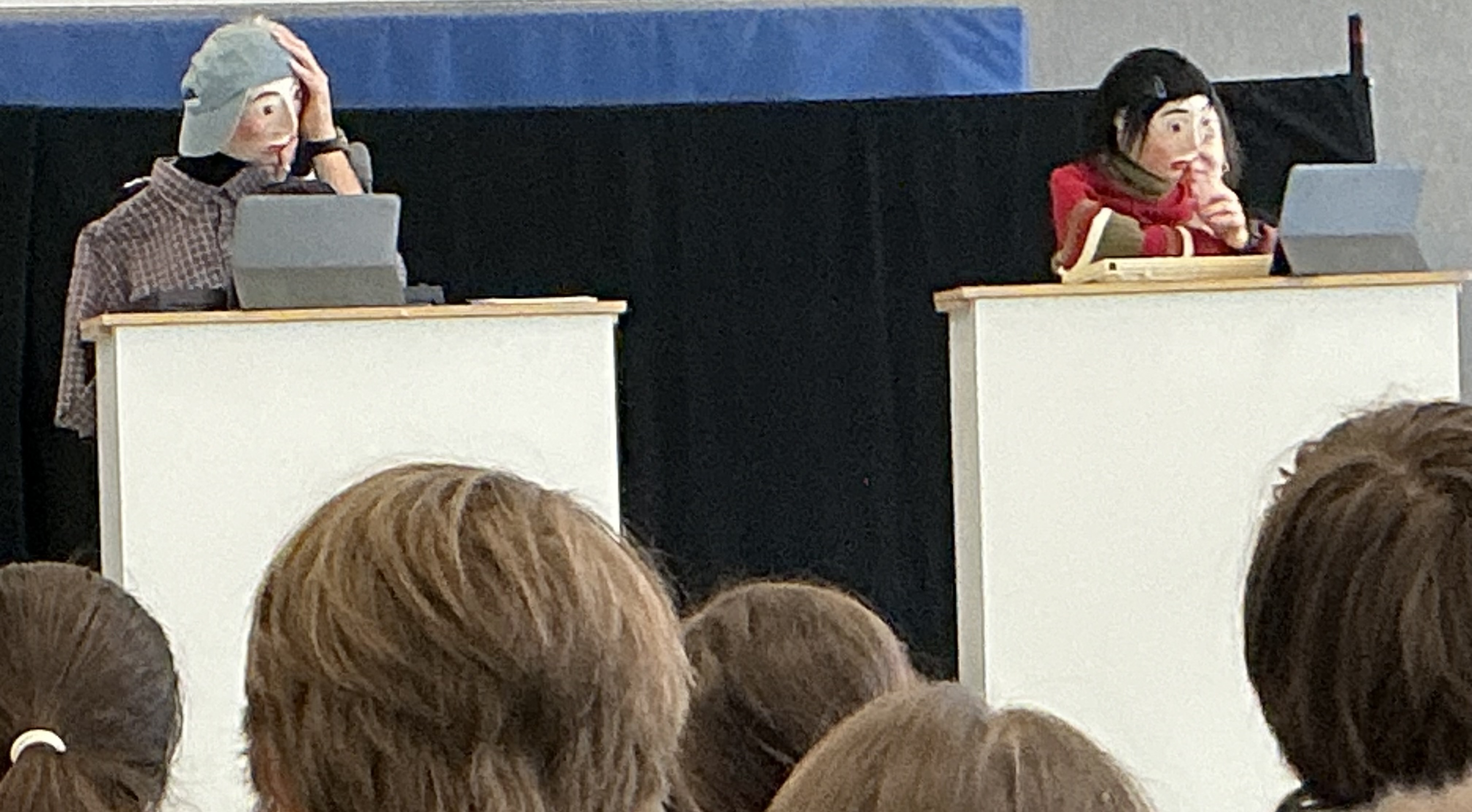 Das Präventionsteam der Polizei zeigt den Kindern unserer Schule durch ein Handpuppenstück den sicheren Umgang mit Medien..